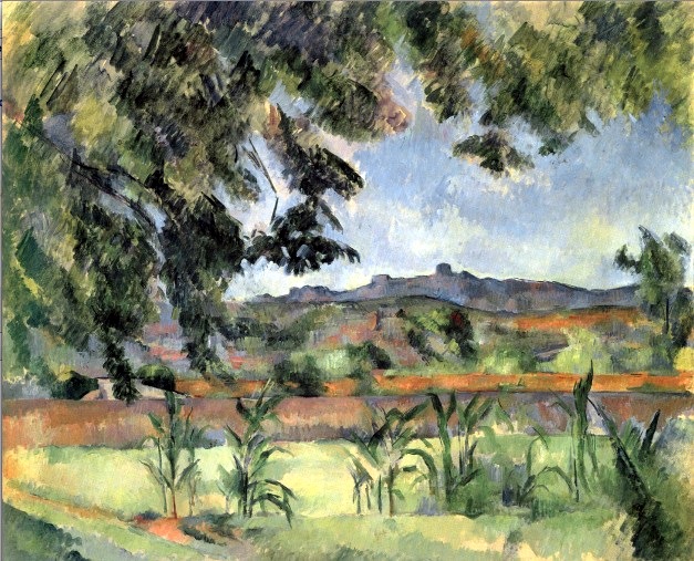 - le plan a) de la butte sur laquelle s’élevait la bastide Barberoux. Sa pente finale à droite en est accentuée par Cezanne ;
