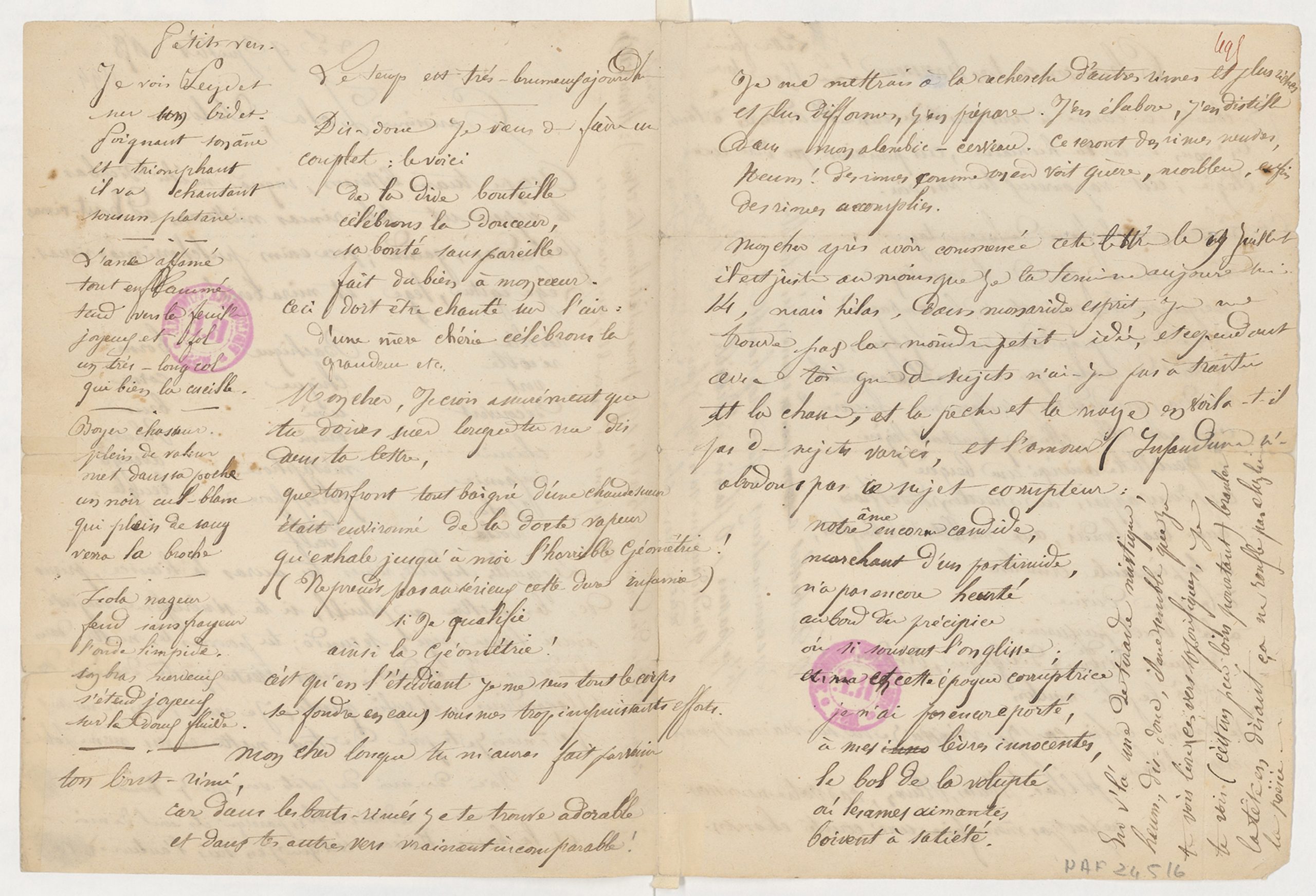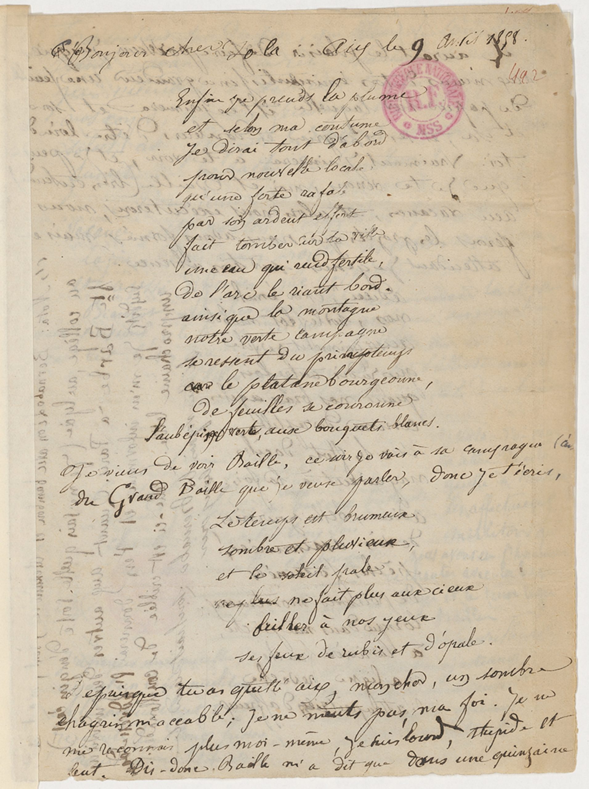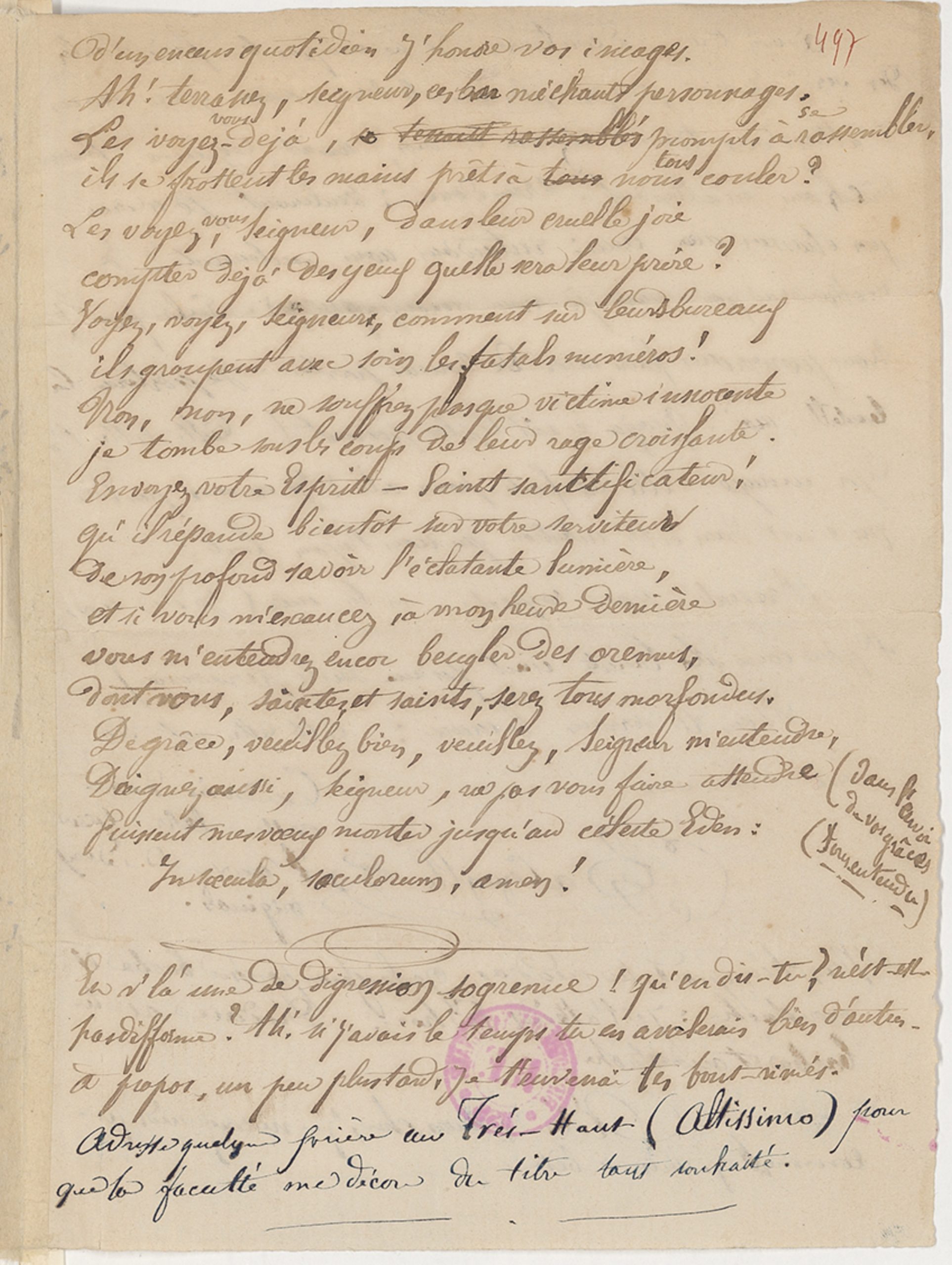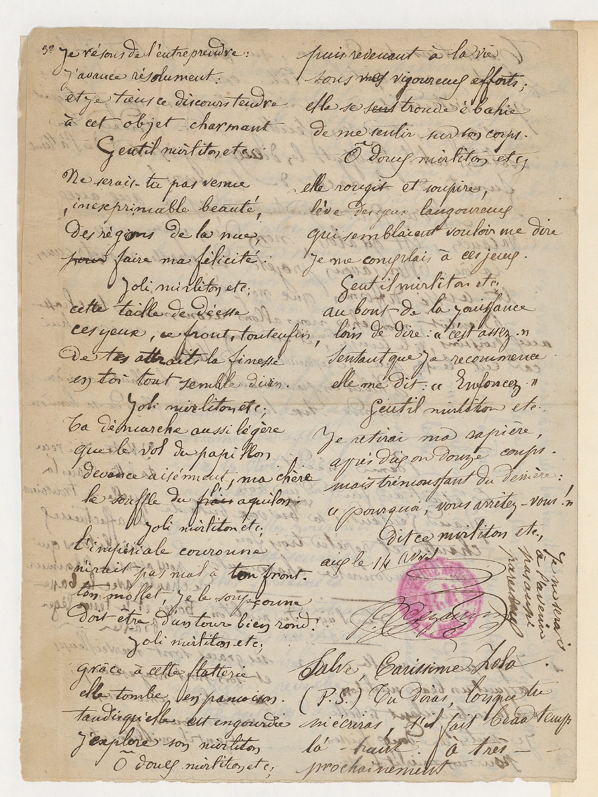 n’attrapait rien d’affreux.[écrit verticalement à droite le long du poème précédent, d’une écriture plus droite, sauf la dernière ligne]