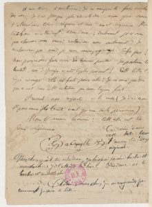 attendant, je gémis sur ton absence.Adieu, mon [rajouté sur la ligne] cher émile [sic] :