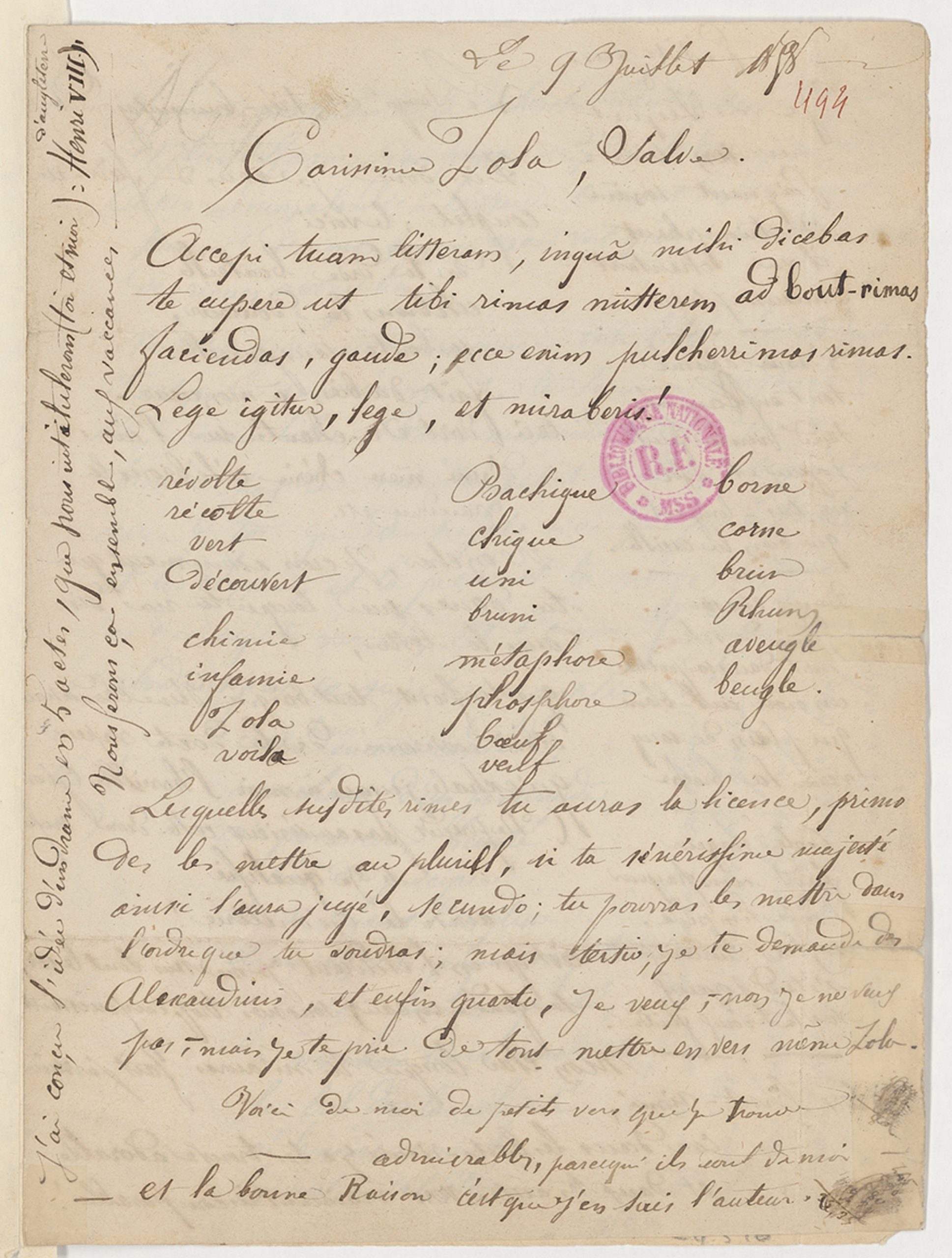 « Bonjour cher Zola Aix le 9 avril 1858.