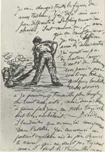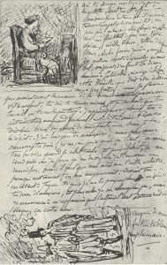 Le choléra comme vous avez pu le savoir a quitté le midi mais il nous reste Valabrègue qui, avec une fécondité surprenante, met chaque jour au monde un ou plusieurs cadavres (en vers cela va sans dire). Il vous en montrera une assez jolie collection à son retour à Paris. La pièce de vers dont vous avez entendu parler étant les deux cadavres s’appelle maintenant les onze cadavres cela donne froid, n’est-ce pas ? C’est du reste œuvre de talent, à ce que l’on dit car il ne m’a pas initié au degré d’avancement de ses productions. Très bon garçon du reste, semblant avoir avalé un paratonnerre ce qui le gêne pour marcher. Quant au jeune Marion que vous connaissez de réputation, il caresse l’espoir d’être appelé à une chaire de géologie. Il fouille ferme et essaye de nous démontrer que Dieu n’a jamais existé et que c’est un montage de coup que d’y croire. De quoi nous nous occupons peu, n’étant pas de la peinture. […]