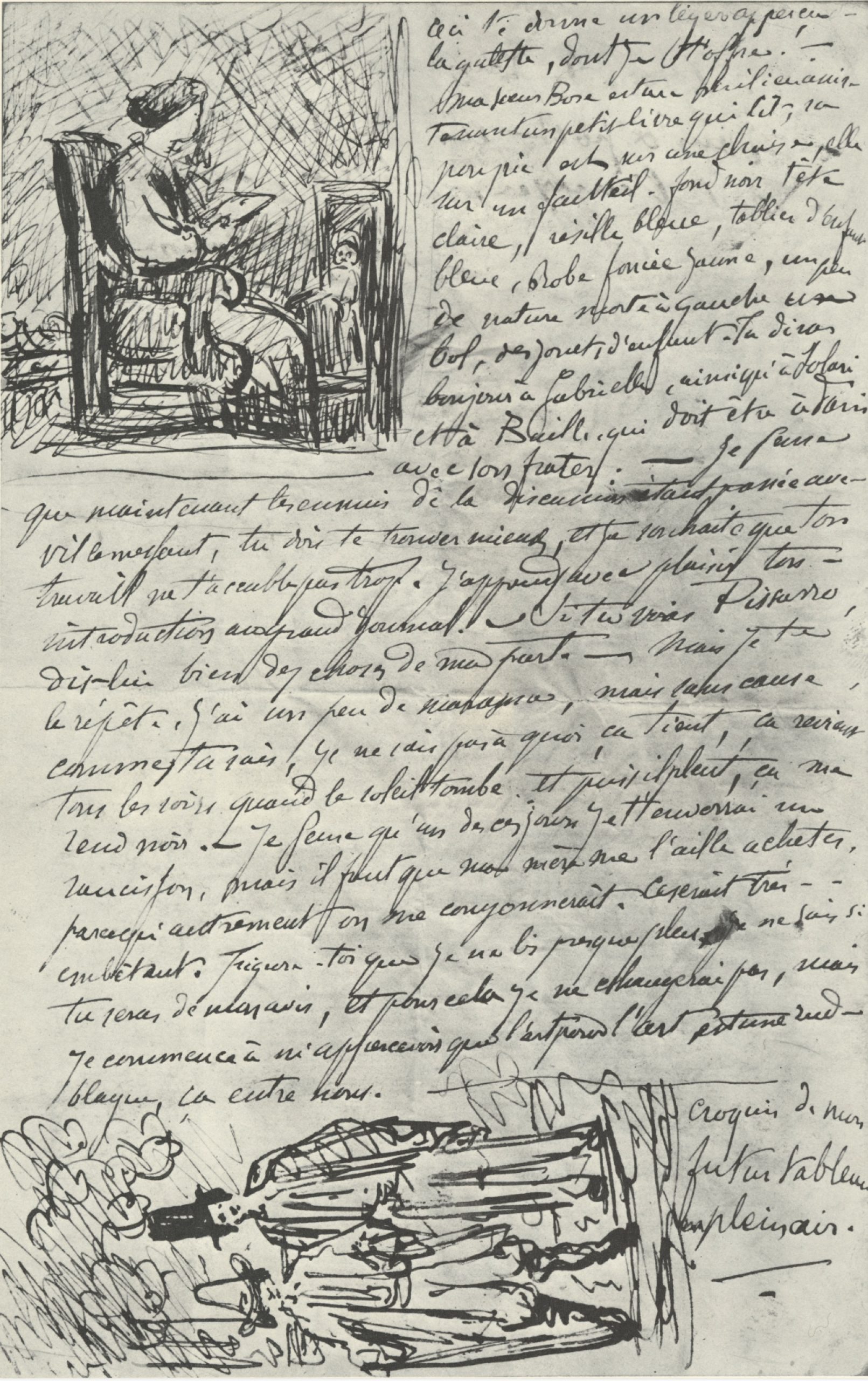 « Paul sera sans doute refusé à l’exposition. Un philistin du jury s’est écrié en voyant mon portrait [R094] que c’était peint, non seulement au couteau, mais encore au pistolet. Une série de discussions se sont élevées déjà. Daubigny a prononcé quelques mots de défense. Il a dit qu’il préférait les tableaux chargés de hardiesse aux nullités accueillies à chaque salon. Il n’a pas eu l’avantage. »