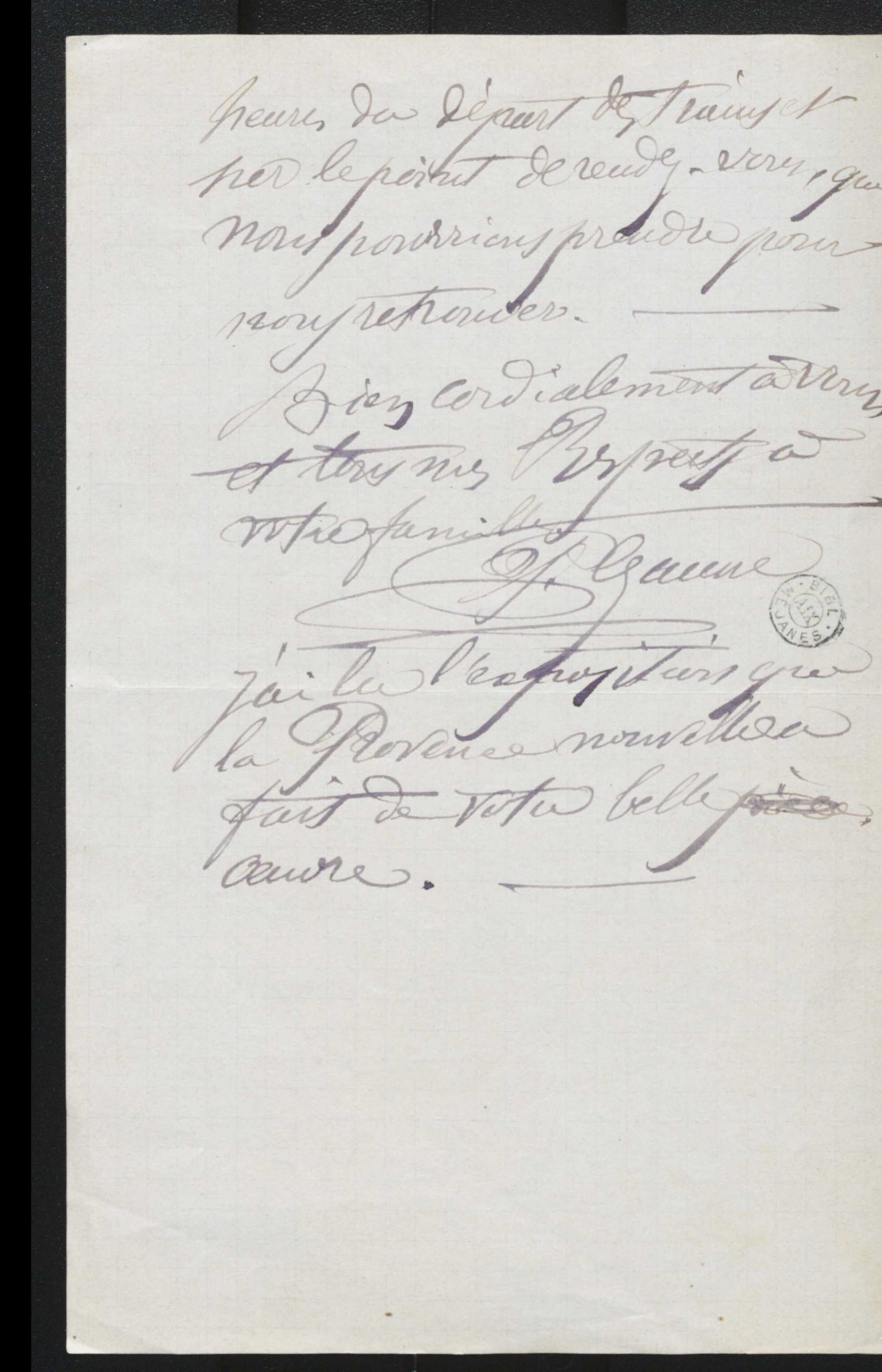Si vous venez à Marseille, j’aurai plus sûrement, je crois, le plaisir de vous voir.