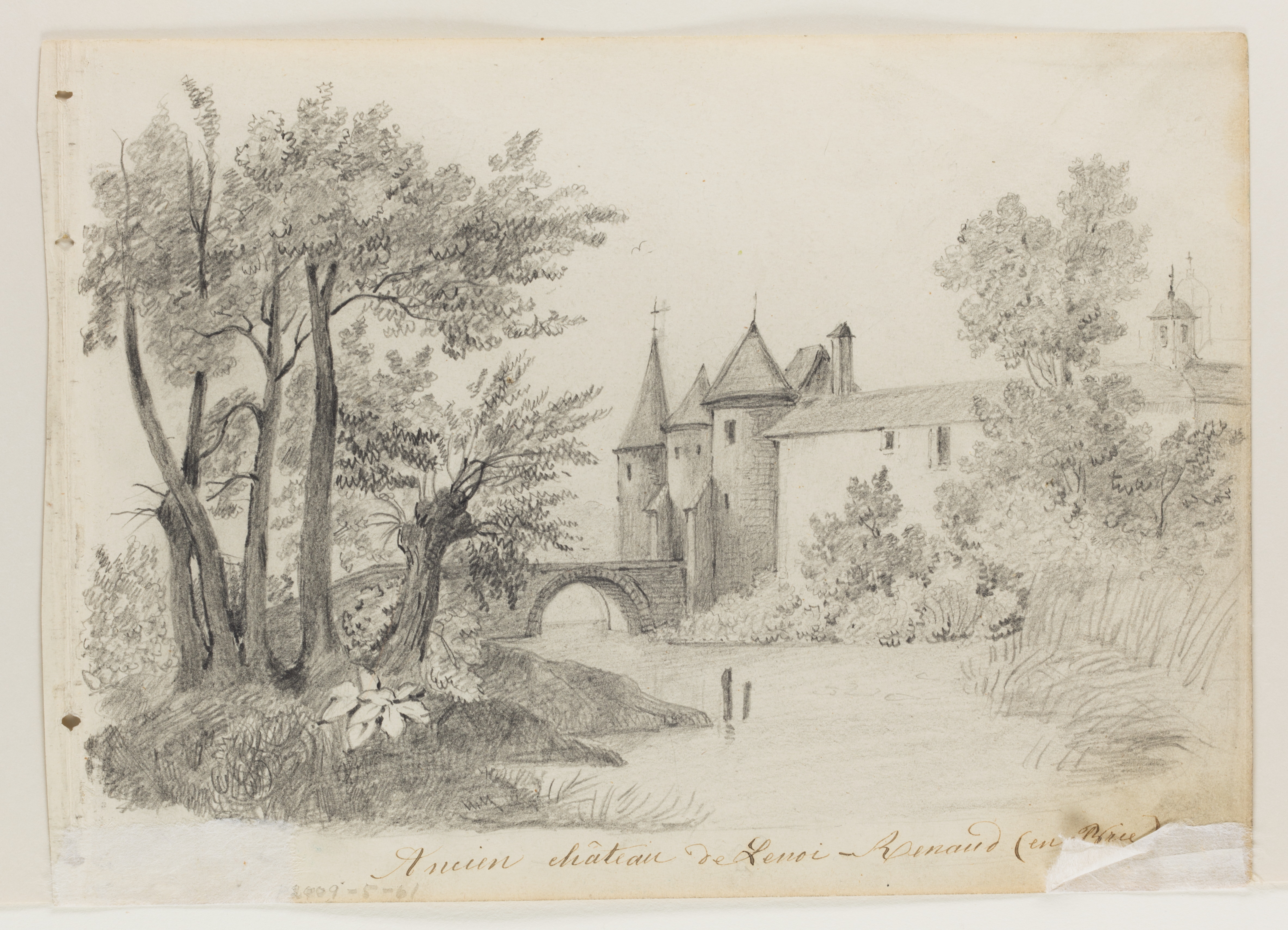 | C0007 – Un homme saisissant le poignet d’un autre, 1856-1858 | C0007v – Ancien château de Lenoi-Renaud (en Brie), par Marie Cezanne