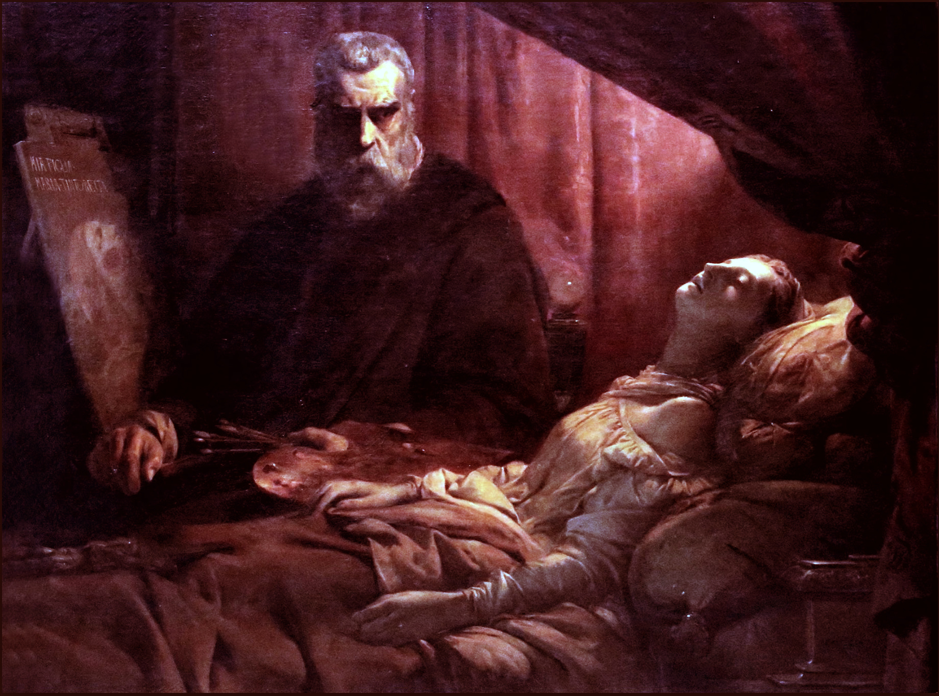 Il faut remarquer la façon habile dont ce pré-raphaélite suggère la croyance incestueuse dans son tableau, grâce à l’ombre projetée par le Tintoret sur le tableau qu’il peint, disposée de telle sorte que l’ombre du Tintoret semble poser sa bouche sur l’image de sa fille. Derrière l’image de dévotion d’un père peignant sa fille morte, se trouve celle plus trouble d’une ombre qui embrasse une image. Dissimulation de l’inceste sous un autre épisode, comme dans Loth et ses filles.