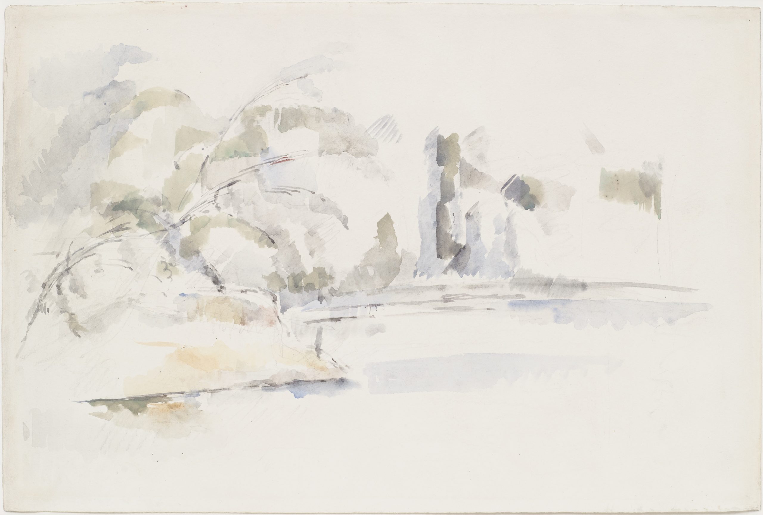 Fig. 343. Arbres se croisant au bord de l’eau, I (Annecy ?), vers 1896, mine de plomb et aquarelle sur papier, 32 x 49 cm, collection particulière (FWN 1415, RW484).