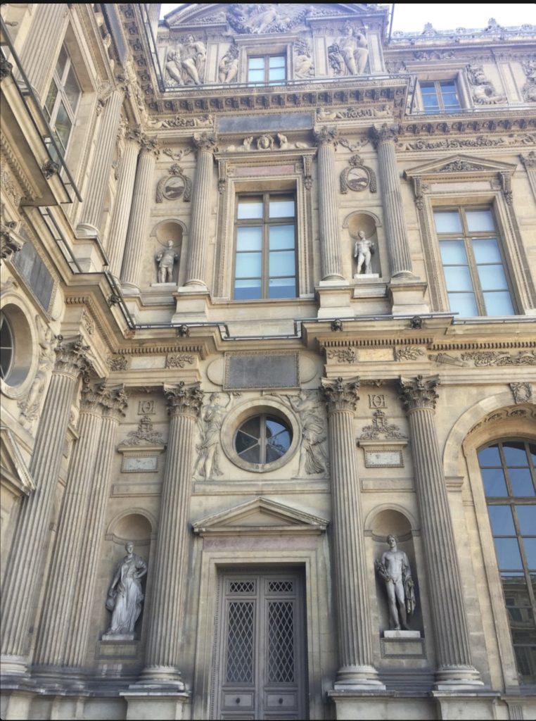 En face de lui se déploie l’imposante aile sud de la Cour Carrée, avec en son centre le Pavillon des Arts par lequel on pénètre dans cette cour intérieure. Ce passage est le plus fréquenté par les visiteurs venant de la rive gauche :