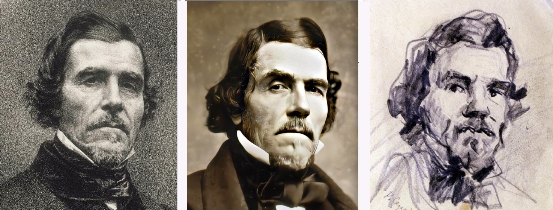 | ↑64 | - Achille Sirouy, Portrait de Delacroix, d’après une photographie de Carjat (détail), un exemplaire au Musée national Eugène Delacroix. – Pierre Petit, cliché vers 1860, publié sous forme de carte de visite. |