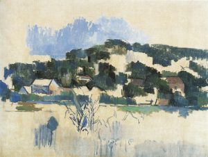Dans les vues de la Sainte-Victoire, la circulation de l’air, comme on la trouve dans la peinture chinoise, par les espaces laissés vides, demande une très grande capacité de retenue pour s’arrêter à juste temps. Dans Maisons sur la colline, je suis très touchée par ce pan de ciel bleu qui fournit l’oxygène suffisant. Voilà où se trouve la virtuosité.